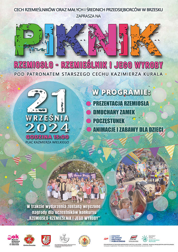 Cech Rzemieślników oraz Małych I Średnich Przedsiębiorców w Brzesku zaprasza na piknik pod hasłem „Rzemiosło – Rzemieślnik i jego wyroby”. Impreza odbędzie się w sobotę 21 września 2024 r. na Placu Kazimierza w Brzesku. Rozpoczęcie o godzinie 15.00.