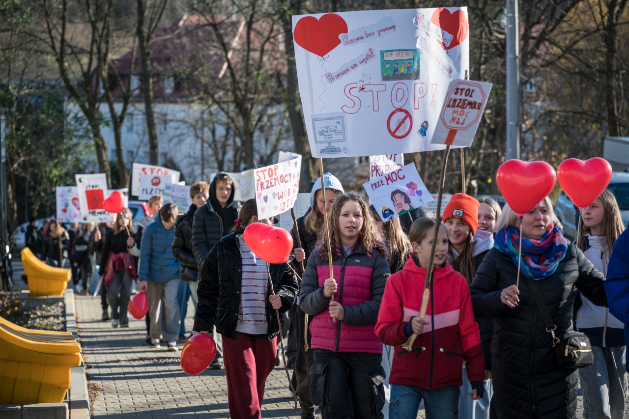 Happening uczniów SP nr 1 stanowi ważne uzupełnienie działań prowadzonych przez bocheński szpital, pokazując, że troska o bezpieczne dzieciństwo jest wspólną odpowiedzialnością dorosłych i młodych mieszkańców Bochni. Uczniowie „jedynki” przygotowali plakaty przedstawiające sposoby reagowania na przemoc wobec najmłodszych. Podczas środowego finału przynieśli je do szpitala wraz z czerwonymi balonami – symbolem sprzeciwu wobec krzywdzenia dzieci.