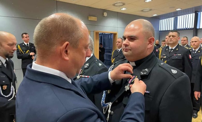 Kapelan brzeskich strażaków Ks. Grzegorz Sroka odznaczony odznaką Św. Floriana „Za zasługi dla społeczności lokalnej”