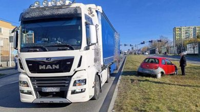 60-letni kierowca nie zauważył, że na lewym pasie ruchu jedzie zestaw ciężarowy i uderzył w prawe przednie jego naroże. Ford…