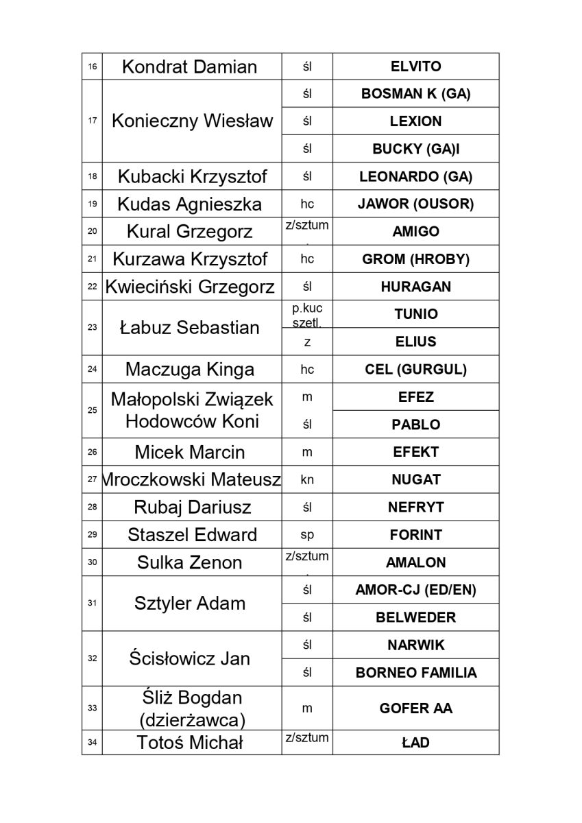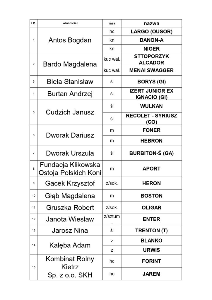 Klikowa. XIII Pokaz Ogierów Hodowlanych – lista wystawców / 8 marca 2025 r.