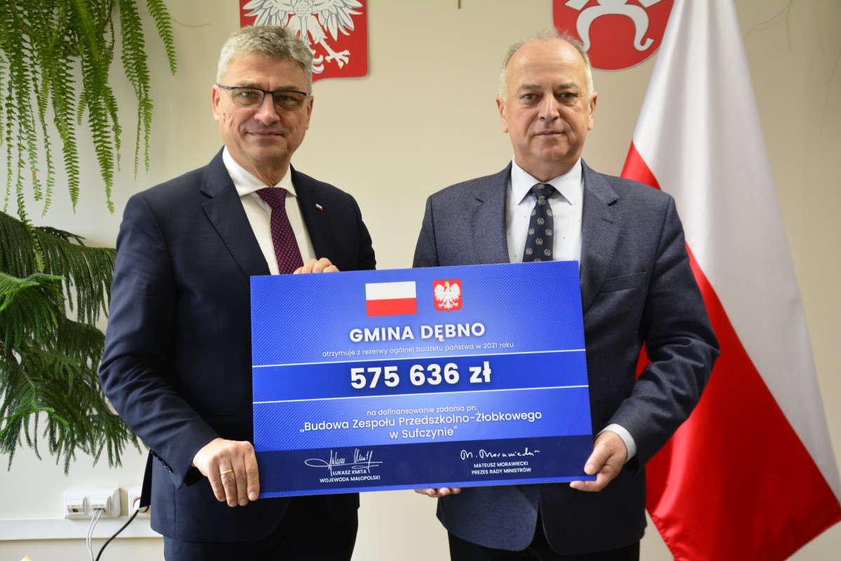 Koniec roku okazał się dla Gminy Dębno owocny, bowiem pozyskała ona kolejną dotację sięgającą ponad pół miliona złotych! Środki w kwocie 575.636,00 zł przyznane przez premiera Mateusza Morawieckiego z rezerwy budżetowej przeznaczone zostaną na dofinansowanie zadania pn. „Budowa Zespołu Przedszkolno-Żłobkowego w Sufczynie”.