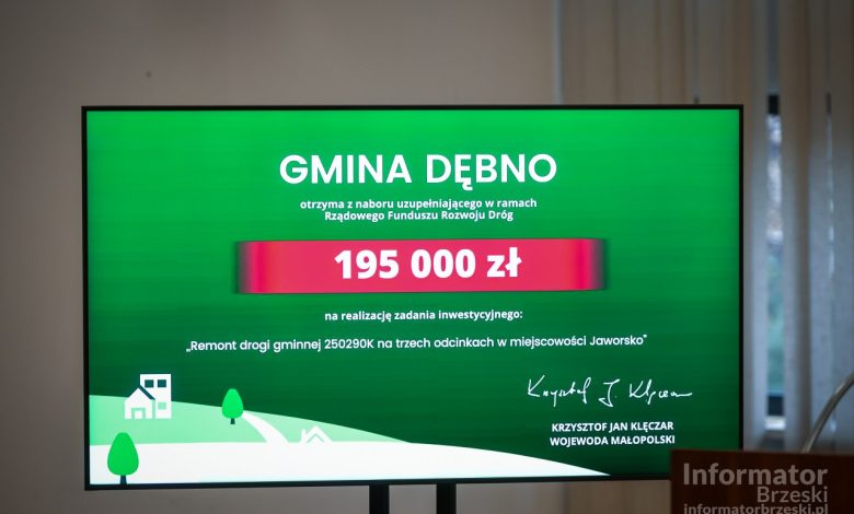 W dniu 28 listopada 2024 r. w Delegaturze Małopolskiego Urzędu Wojewódzkiego w Tarnowie odbyło się spotkanie, podczas którego podpisano umowę w ramach Rządowego Funduszu Rozwoju Dróg na realizację kolejnej ważnej dla mieszkańców inwestycji. Gminę Dębno reprezentowali, Wójt Gminy Dębno Wiesław Kozłowski oraz Skarbnik Gminy Jacek Szklarz.