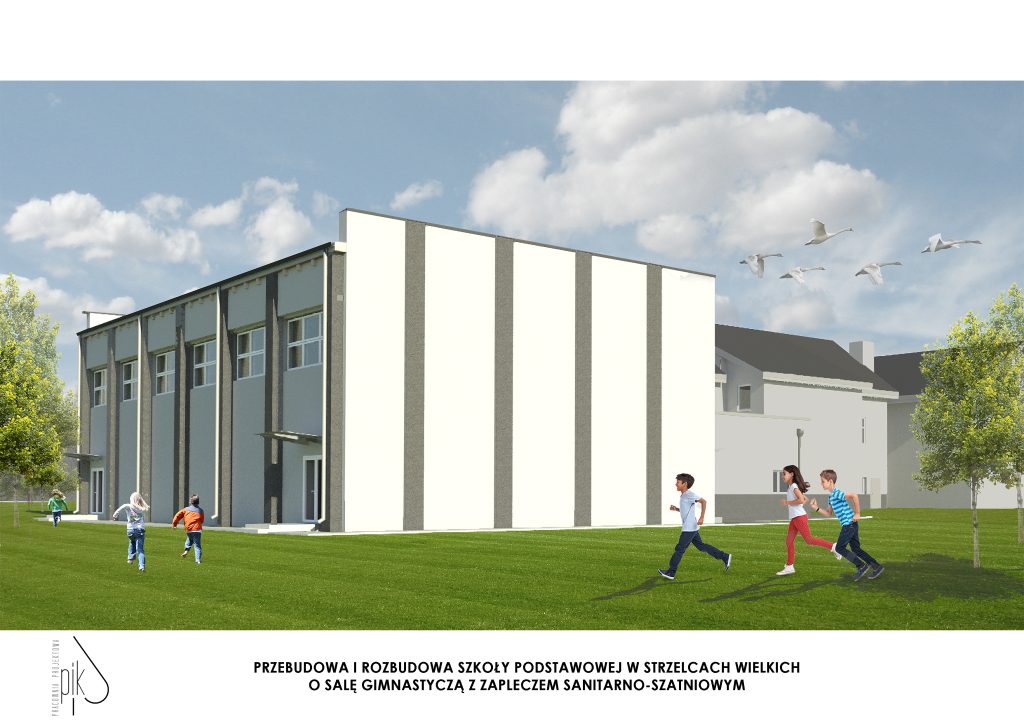 Warto również podkreślić, że to nie koniec planowanych inwestycji w budynku szkolnym w Strzelcach Wielkich. W ramach rewitalizacji szkoła przejdzie dużą modernizację – wnętrze budynku zostanie odmalowane, do klas zostanie doprowadzona instalacja wody użytkowej, zostaną wyremontowane posadzki. Zmiany zajdą również na zewnątrz szkoły – przebudowany zostanie teren rekreacyjny, a budynek przejdzie głęboką modernizację energetyczną (wymiana opraw oświetleniowych, termomodernizacja, panele PV, kolektory słoneczne, pompy ciepła). Szkoła w Strzelcach zostanie dostosowana do osób z niepełnosprawnościami oraz do wymogów PPOŻ.