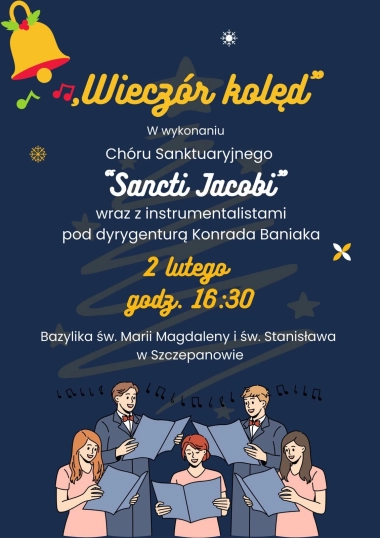 Duszpasterze z Parafii Szczepanów zapraszają parafian i gości w niedzielę 2 lutego 2025 r. o godz. 16.30 do Bazyliki w Szczepanowie na wieczór kolęd.