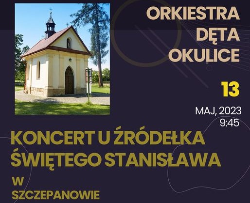 W najbliższą sobotę 13 maja 2023 roku o godzinę 9:45 w Szczepanowie przy Kaplicy narodzenia Św. Stanisława BM odbędzie się koncert w wykonaniu Orkiestry Dętej Okulice.