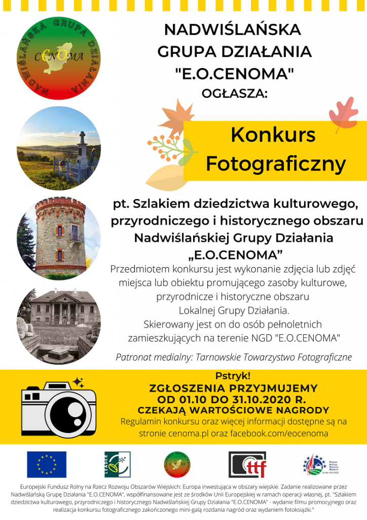 Konkurs fotograficzny – Szlakiem dziedzictwa kulturowego, przyrodniczego i historycznego obszaru Nadwiślańskiej Grupy Działania „E.O.CENOMA”.