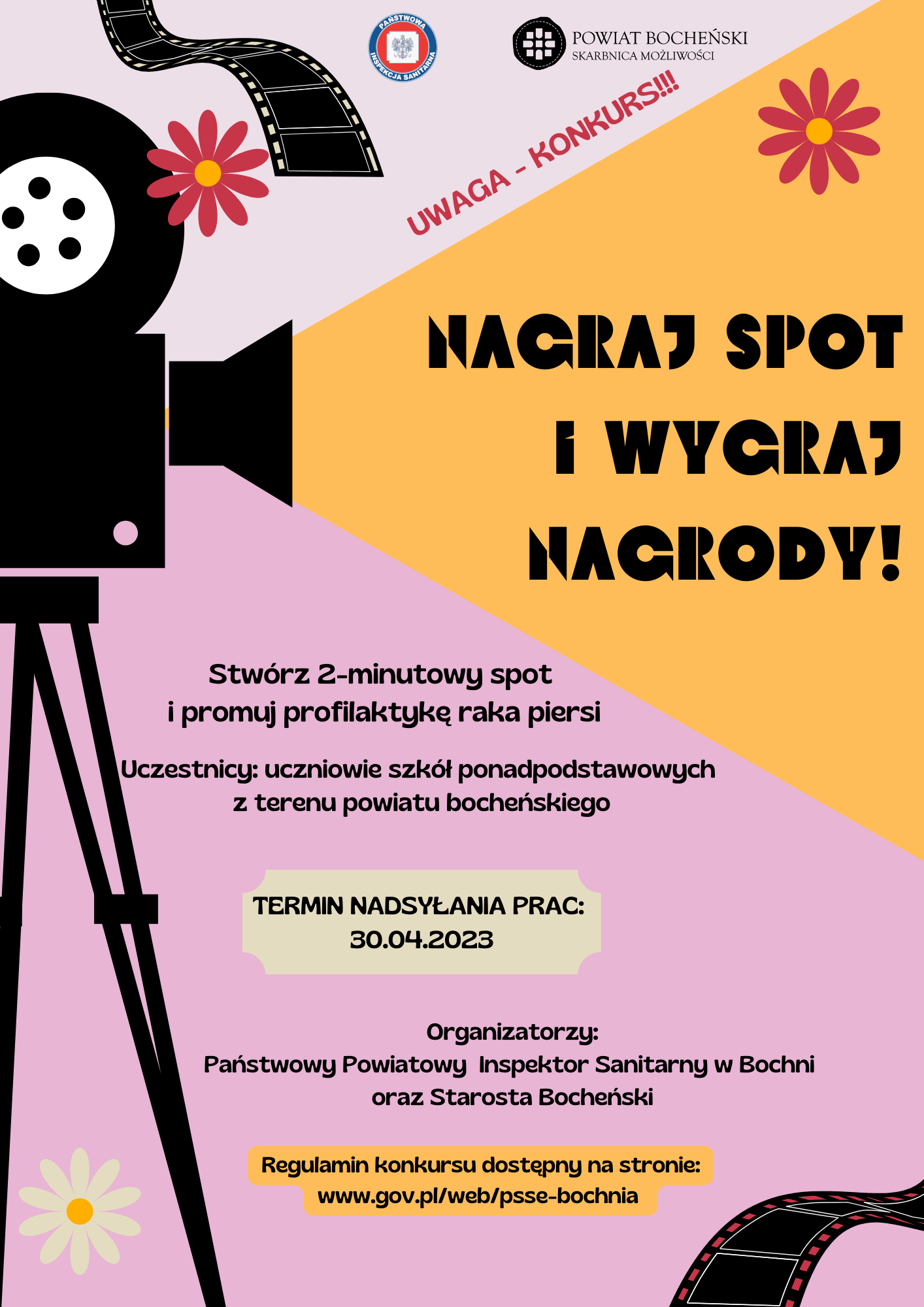 Organizatorami konkursu „Dotykam, badam, żyję!” jest Powiatowa Stacja Sanitarno – Epidemiologiczna w Bochni oraz Starostwo Powiatowe w Bochni. Jego celem jest promowanie badań profilaktycznych, zwiększenie świadomości nt. nowotworu piersi oraz zmotywowanie kobiet, szczególnie młodych, do regularnego badania się. Zadanie konkursowe polega na przygotowaniu 2 minutowego spotu dotyczącego profilaktyki raka piersi. Zwycięskie prace zostaną także zaprezentowane podczas finału całej kampanii.