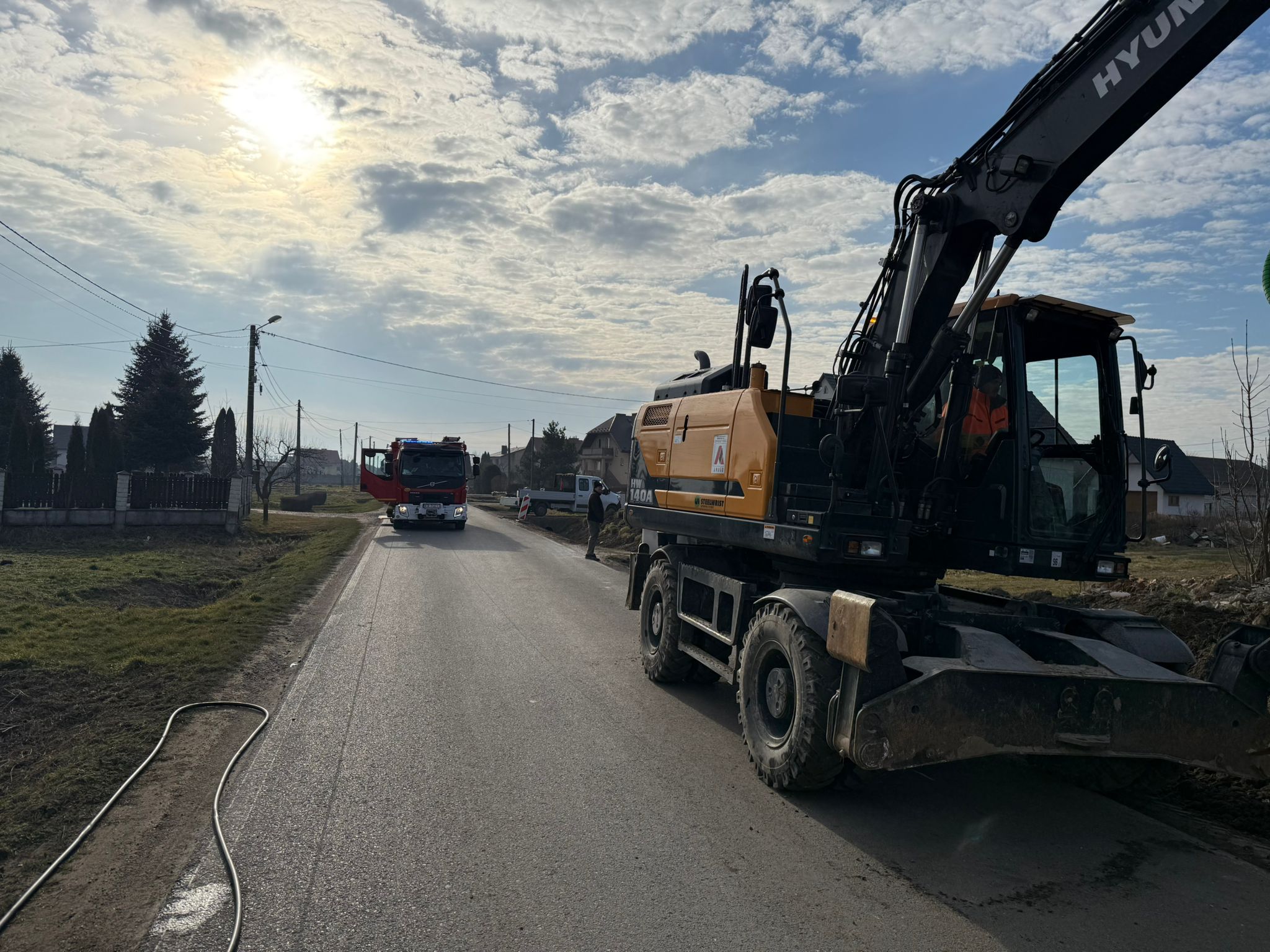 Koparka uszkodziła gazociąg w Borzęcinie/ zdjęcia