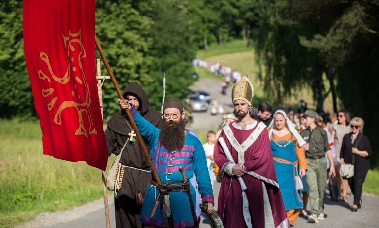 Dębno. „Szli święci przez Polskę, idą i dziś”. Przemarsz pod figurę św. Kingi.
