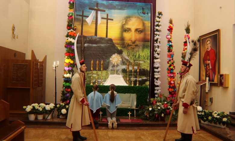 Kosynierzy ze Strzelec Wielkich przy Grobie Chrystusa. Wielkanocna tradycja z Gminy Szczurowa / zdjęcia