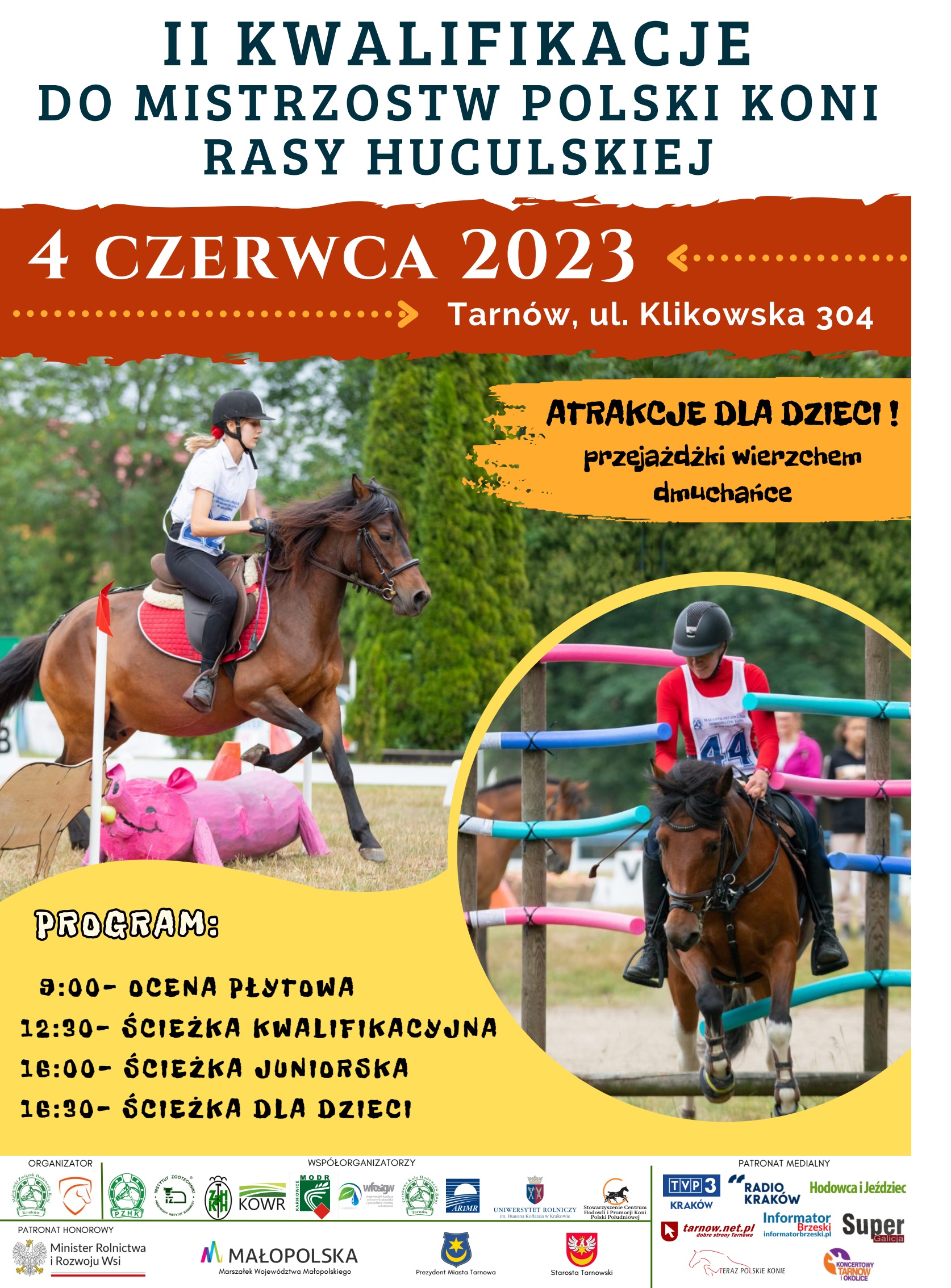 Małopolski Związek Hodowców Koni w Krakowie zaprasza w niedzielę 4 czerwca 2023 roku na II Kwalifikacje do VI Mistrzostw Polski Koni Rasy Huculskiej, które odbędą się w Klikowej. To wielka gratka dla miłośników koni. Wstęp na wydarzenie bezpłatny.