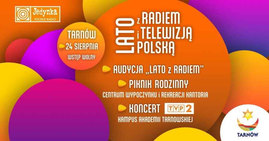 Już w najbliższą sobotę, 24 sierpnia 2024 r. Tarnów zamieni się w stolicę muzyki, radia i telewizji. Będzie głośno, koncertowo i imprezowo. Na scenie Akademii Tarnowskiej wystąpią znane wszystkim polskie gwiazdy, tarnowska Kantoria stanie się radiowym piknikiem rodzinnym, a rynek studiem telewizyjnym.