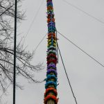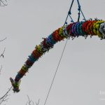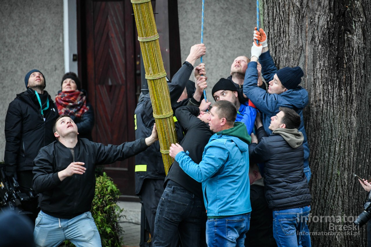Silny wiatr dał się jednak we znaki — jedna z wysokich palm złamała się podczas stawiania.