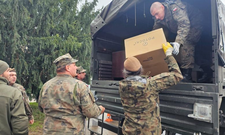 Małopolscy terytorialsi z darami dla powodzian