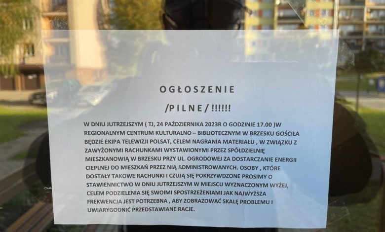 W dniu jutrzejszym ( tj. 24 października 2023r o godzinie 17.00 ) w Regionalnym Centrum Kulturalno-Bibliotecznym w Brzesku gościła będzie ekipa telewizji Polsat, celem nagrania materiału, w związku z zawyżonymi rachunkami wystawionymi przez Spółdzielnię Mieszkaniową w Brzesku przy ul. Ogrodowej za dostarczanie energii cieplnej do mieszkań przez nią administrowanych.