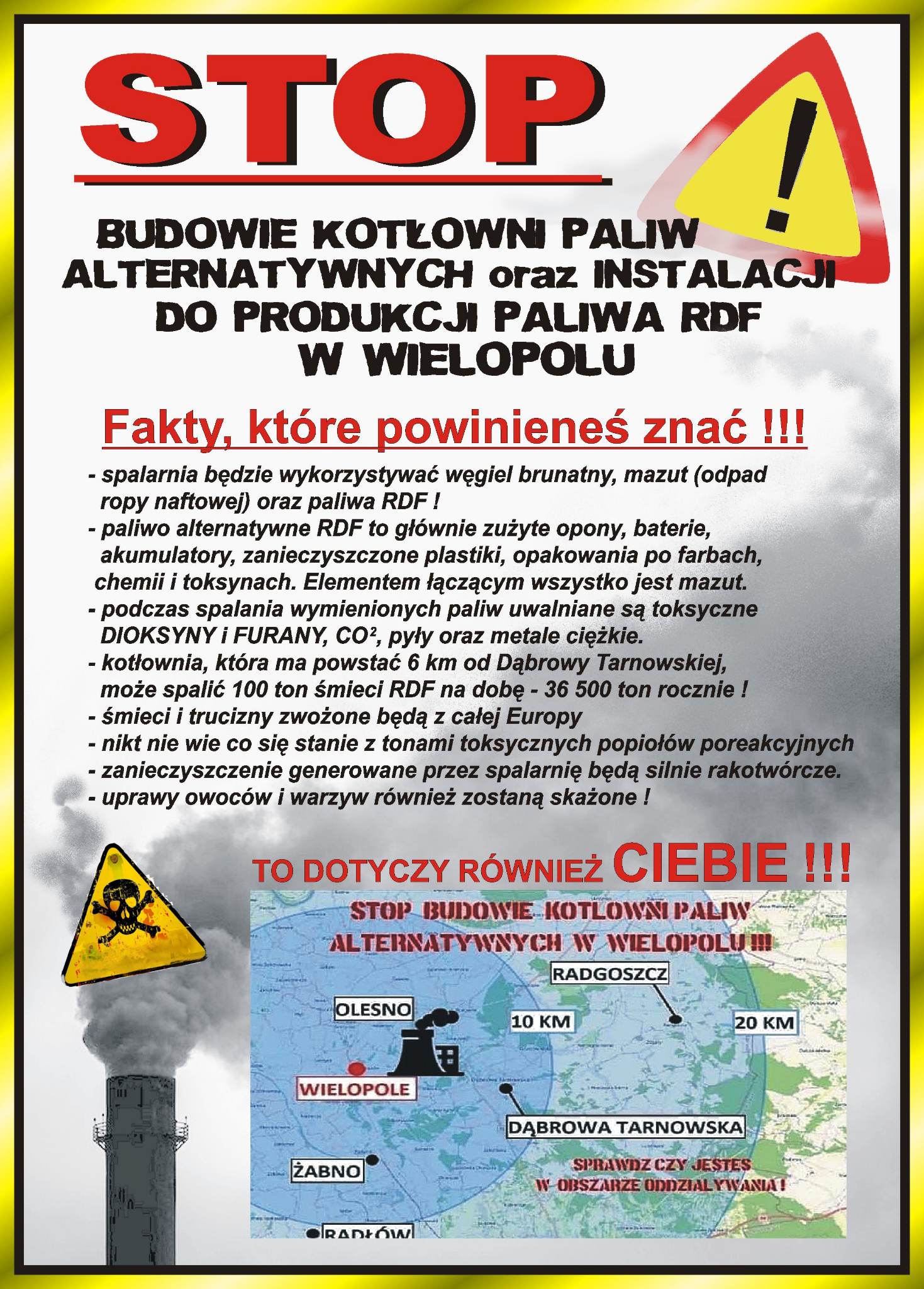Mieszkańcy Wielopola w gminie Olesno protestują przeciwko budowie w swojej miejscowości instalacji do przygotowania oraz spalania paliwa alternatywnego oraz instalacji do produkcji alkoholu etylowego. Kotłownia paliw alternatywnych ma powstać niecałe 10 km od centrum Dąbrowy Tarnowskiej, a według wyliczeń mieszkańców, zasięg jej oddziaływania ma wynieść nawet 20 km. Twierdzą także, że odpady mają być tutaj zwożone z promienia przynajmniej 100 kilometrów.