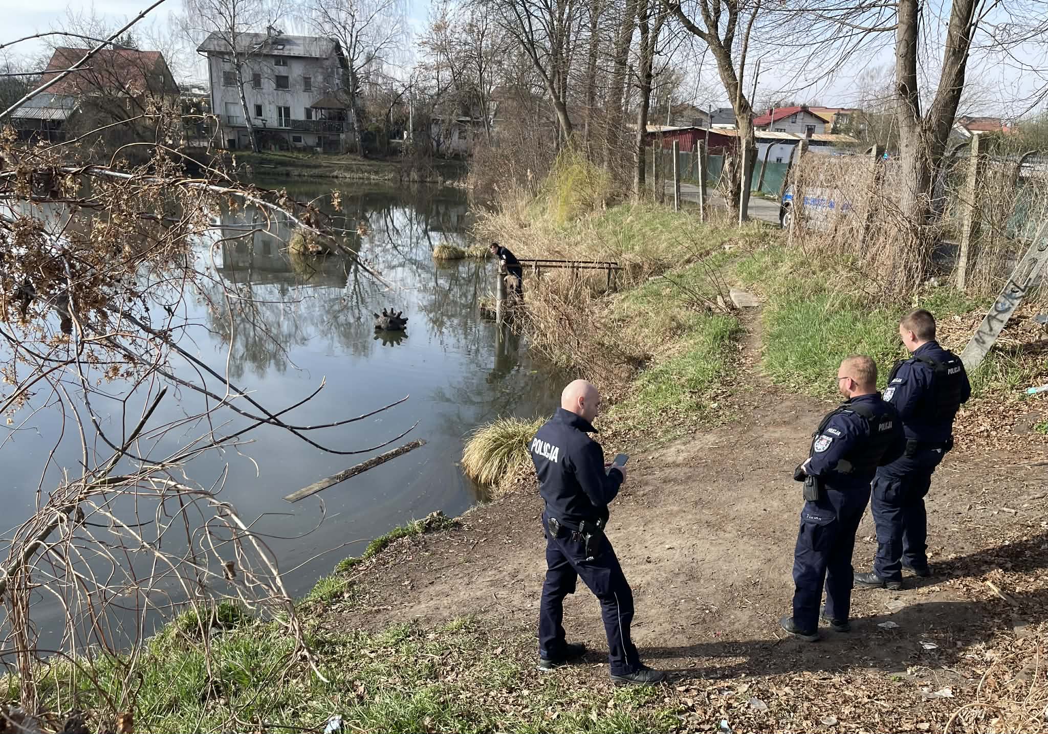 Brzesko. Mina morska pływa w stawie Wolnego? Policjanci na miejscu. Czekają na saperów / zdjęcia