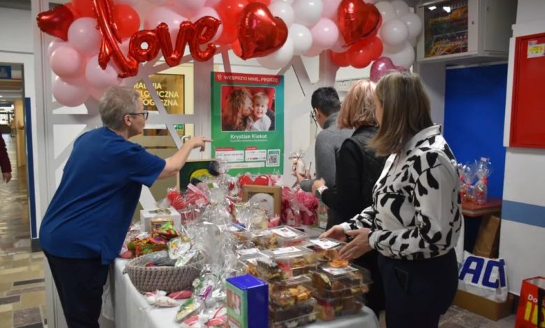 Smaczne domowe ciasta i ciasteczka, piernikowe serduszka, świece zapachowe, kompozycje kwiatowe oraz walentynkowe ozdoby – wszystko to można było kupić podczas kiermaszu zorganizowanego 13 lutego 2026 r. w holu Szpitala Powiatowego w Brzesku.