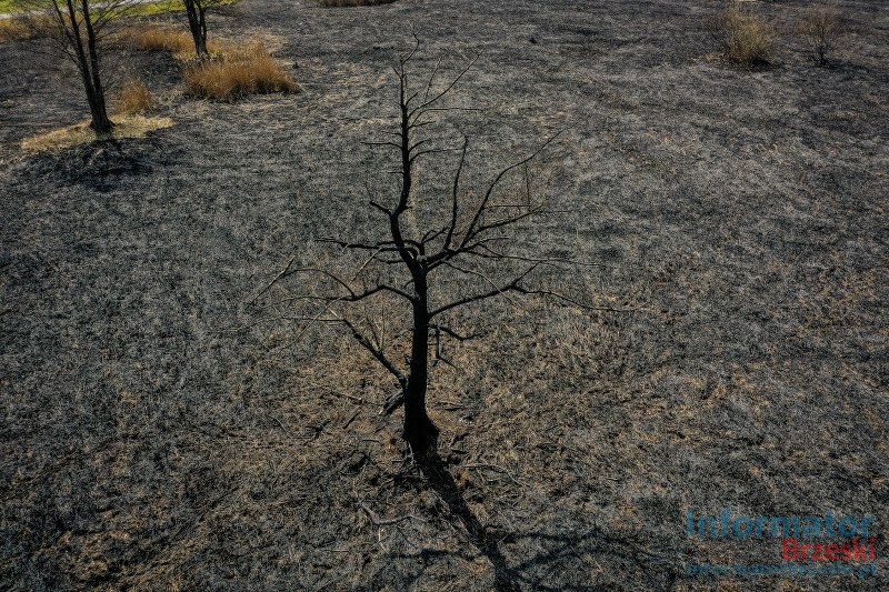 W piątek byliśmy na miejscu zdarzenia. Mamy dla was zdjęcia oraz nagranie z drona. Widok robi piorunujące wrażenie! Wypalone do cna trawy, uszkodzone przez ogień drzewa i krzewy… Trudno ustalić jaka ilość drobnej zwierzyny mogła ponieść śmierć w płomieniach. A wszystko to za sprawą podpalacza, który dopuścił się podpalenia!