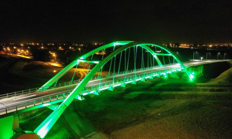 Oprócz iluminacji samego mostu zostały również doświetlone wjazdy na niego z obu stron.