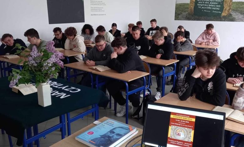 Nauczyciele i uczniowie Zespołu Szkół Technicznych i Branżowych w Brzesku po raz piąty czytali Pismo Święte w ramach narodowego czytania Biblii.