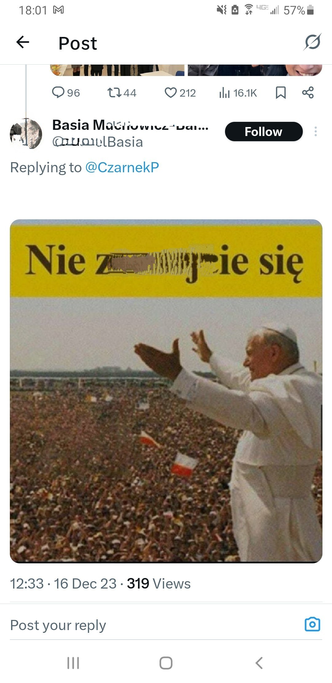 Jak przekazał nam czytelnik kobieta jest bardzo konsekwentna w swoich wpisach, a tematyka „defekacyjna” nie pierwszy raz była przez nią stosowana. Czytelnik znalazł w serwisie X wpis z 2023 roku. Wulgarny zwrot „Nie ze***jcie się” naniesiony na zdjęcie z Janem Pawłem II kobieta zamieściła pod wpisem ówczesnego ministra edukacji Przemysława Czarnka.
