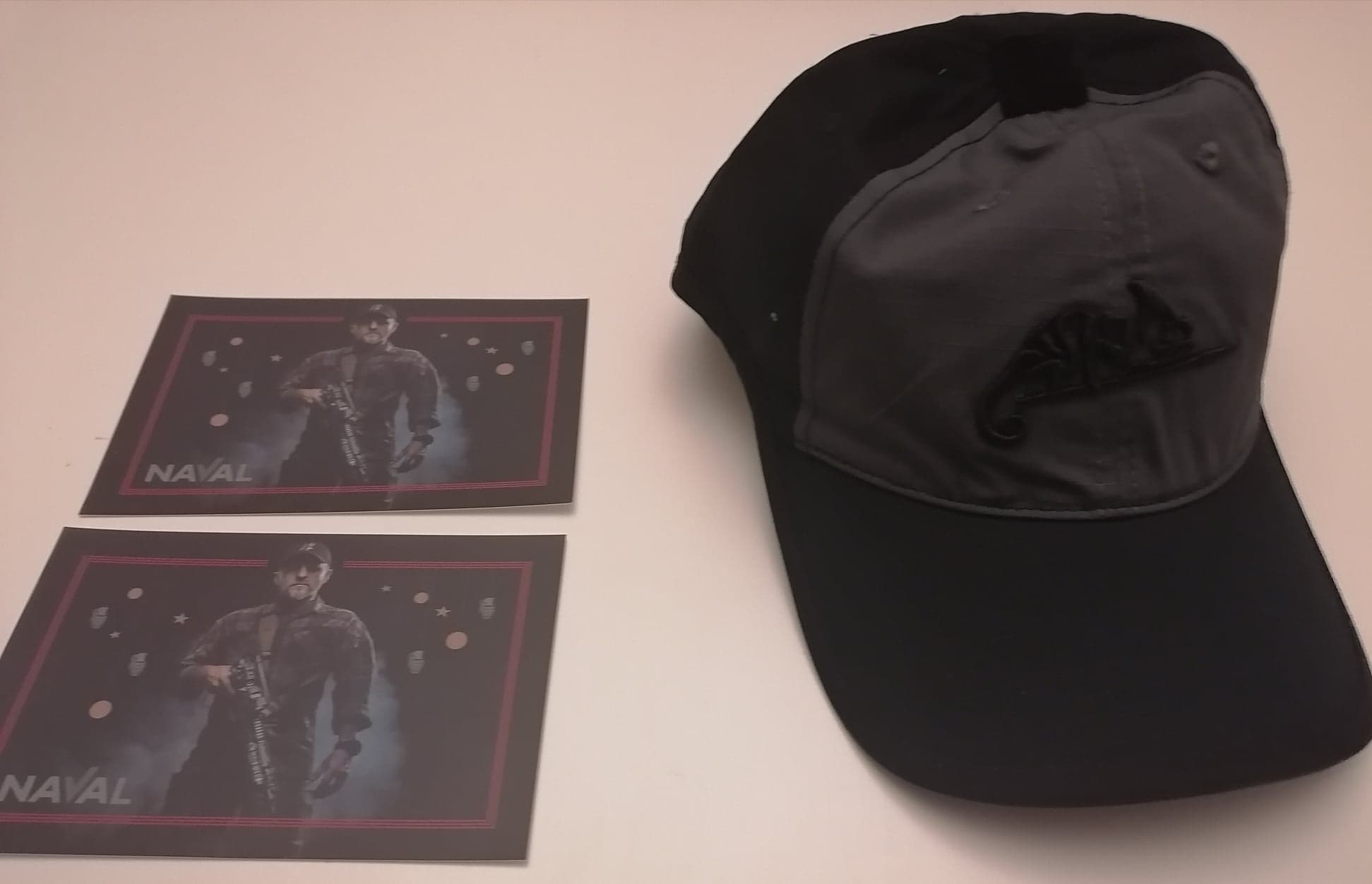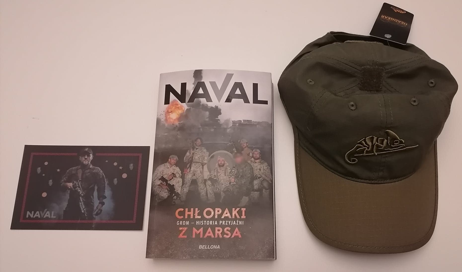 - Pakiet: czapeczka bejsbolówka (firmy Helikon) – z podpisem Navala i kartka pocztowa z dedykacją.