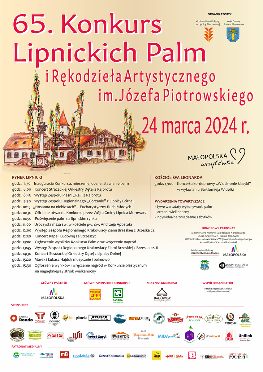 Program 65. Konkursu Lipnickich Palm i Rękodzieła Artystycznego im. Józefa Piotrowskiego Lipnica Murowana 24 marca 2024 r.