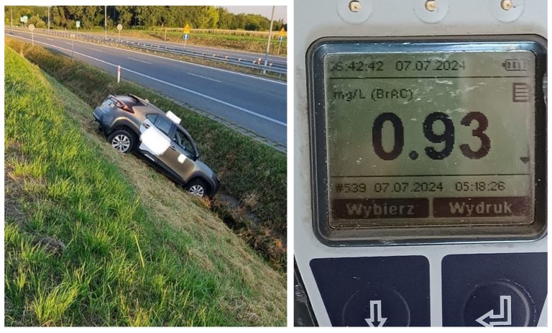 Nad ranem 6 lipca br. dyżurny Komendy Miejskiej w Tarnowie, odebrał telefon z informacją o kierującym pojazdem Toyota, który w miejscowości Ładna z niewyjaśnionych przyczyn zjechał z drogi i wjechał do przydrożnego rowu. Obecny na miejscu świadek, powiadomił także, iż wyczuwa od kierującego woń alkoholu.
