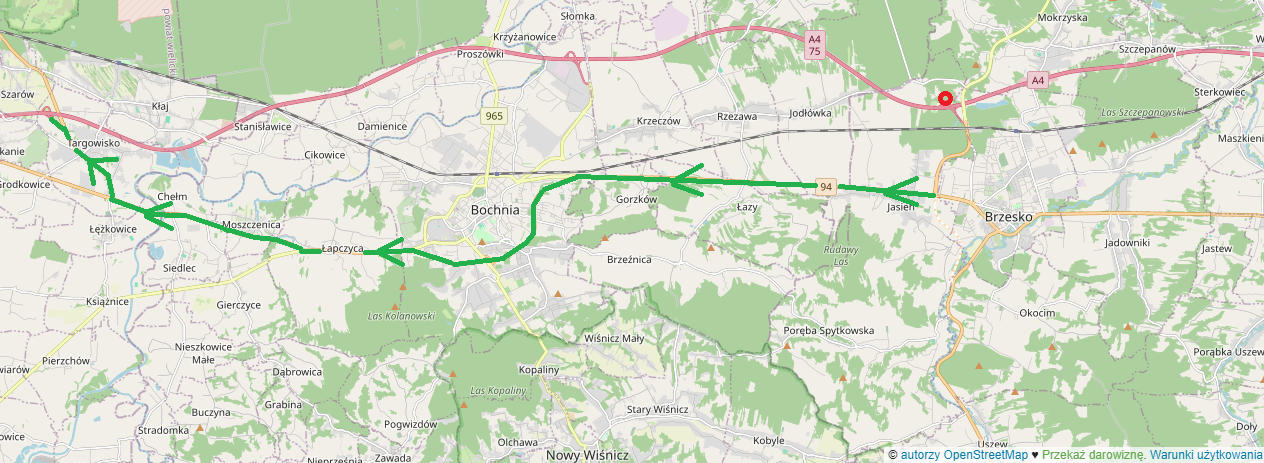 Zalecamy objazd od ronda w Jasieniu drogą krajową nr 94 („starą czwórką”) do Targowiska, do skrzyżowania z drogą wojewódzką nr 963, a następnie DW963 do węzła Targowisko.
