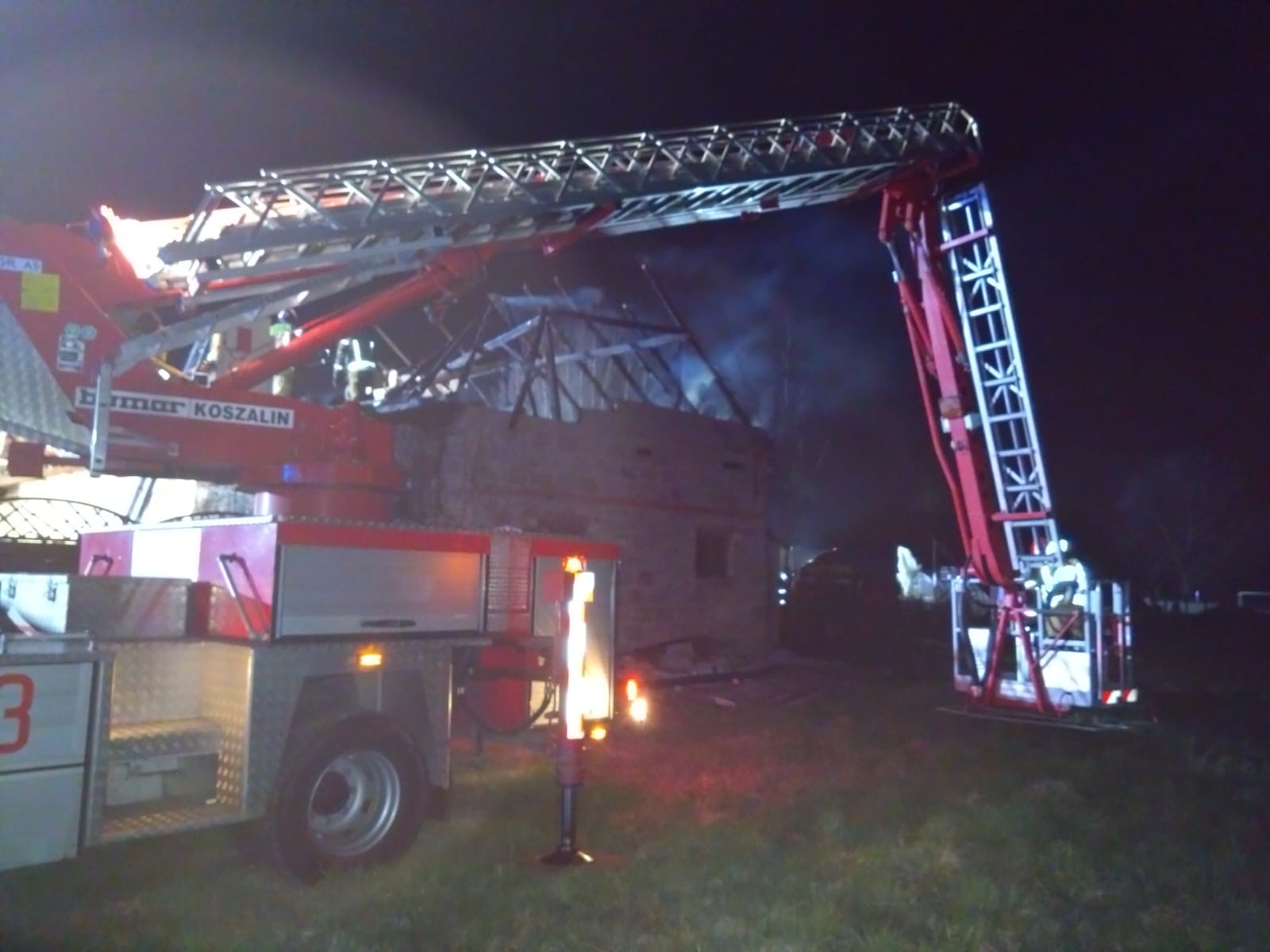 Na miejsce zostały zadysponowane zastępy jednostek Ochotniczych Straży Pożarnych oraz Państwowej Straży Pożarnej, Policji Pogotowie Energetyczne.