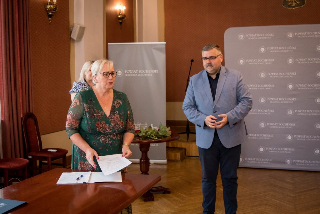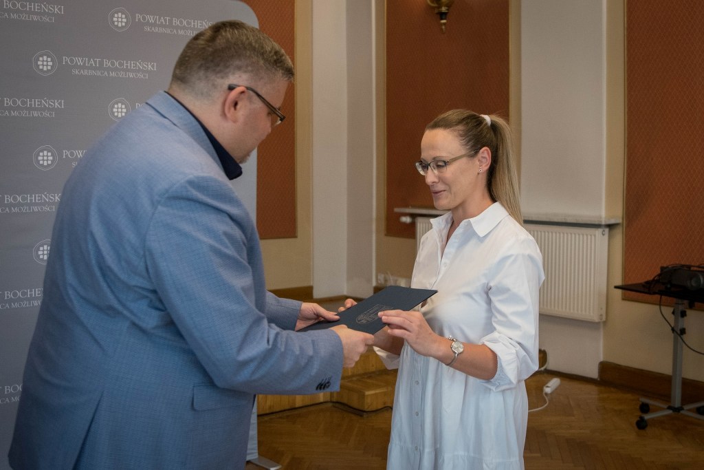 W Starostwie Powiatowym w Bochni odbyło się uroczyste wręczenie aktów mianowania nauczycielom szkół i placówek oświatowych, prowadzonych przez Powiat Bocheński, którzy w wyniku zdanego egzaminu uzyskali stopień nauczyciela mianowanego. Dokonano także wręczenia nominacji panu Jarosławowi Marcowi – nauczycielowi Centrum Kształcenia Zawodowego i Ustawicznego im. Jana Pawła II w Łapanowie , któremu Zarzad powiatu powierzył obowiązki dyrektora na okres 10 miesięcy od 1 wrzesnia 2023 roku do 30 czerwca 2024 roku.