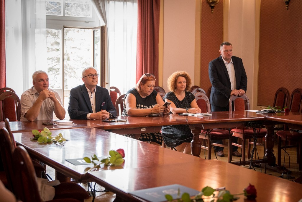 Następnie Starosta pogratulował i wręczył nominacje dla Pana Jarosława Marca – pełniącego obowiązki Dyrektora CKZiU w Łapanowie od 1 września br.