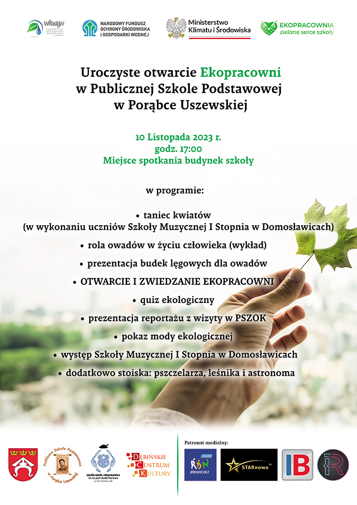 10 listopada o godzinie 17.00 w budynku Publicznej Szkoły Podstawowej w Porąbce Uszewskiej odbędzie się uroczystość oddania do użytku nowoczesnej ekopracowni. Dobiegły końca prace remontowe, zakupiony został wysokiej jakości sprzęt multimedialny, meble oraz pomoce dydaktyczne, które pozwoliły stworzyć w szkole w Porąbce nowoczesną pracownię stanowiącą przestrzeń do nauki i rozwijnia zainteresowań przyrodniczych uczniów.