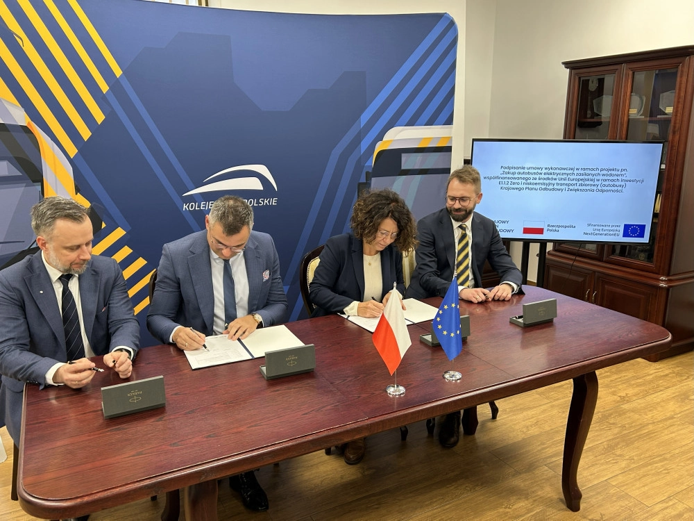 Podpisanie umowy wykonawczej na zakup autobusów elektrycznych zasilanych wodorem dla Kolei Małopolskich.