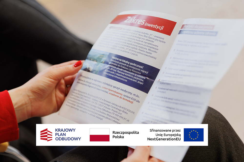 Ta inwestycja to realna zmiana, możliwa dzięki 80 mln zł dofinansowaniaprzekazanego przez Ministerstwo Zdrowia w ramach Krajowego Planu Odbudowy. Pozostałe środki pochodzą z budżetu Województwa Małopolskiego (10 mln zł) oraz wkładu własnego szpitala.