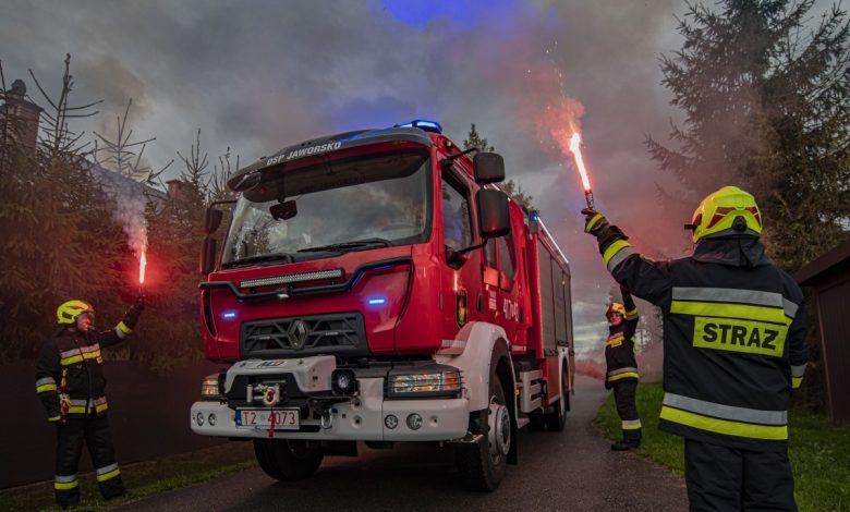 Strażacy nie kryli olbrzymiej radości. Nowy pojazd został powitany odpalonymi racami oraz głośnymi wiwatami.