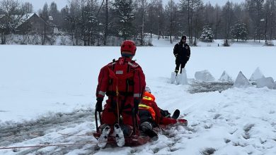 Dlatego apelujemy o omijanie szerokim łukiem wszelkich akwenów wodnych, takich jak rzeki, jeziora, czy stawy. W nadchodzących dniach w regionie, synoptycy prognozują odwilż i temperatury sięgające nawet 13 kresek powyżej zera. Oznacza to, że warstwa lodu na zamarzniętych dotąd zbiornikach stanie się krucha i śmiertelnie niebezpieczna. Prosimy rodziców aby uczulili swoje pociechy na zagrożenie.