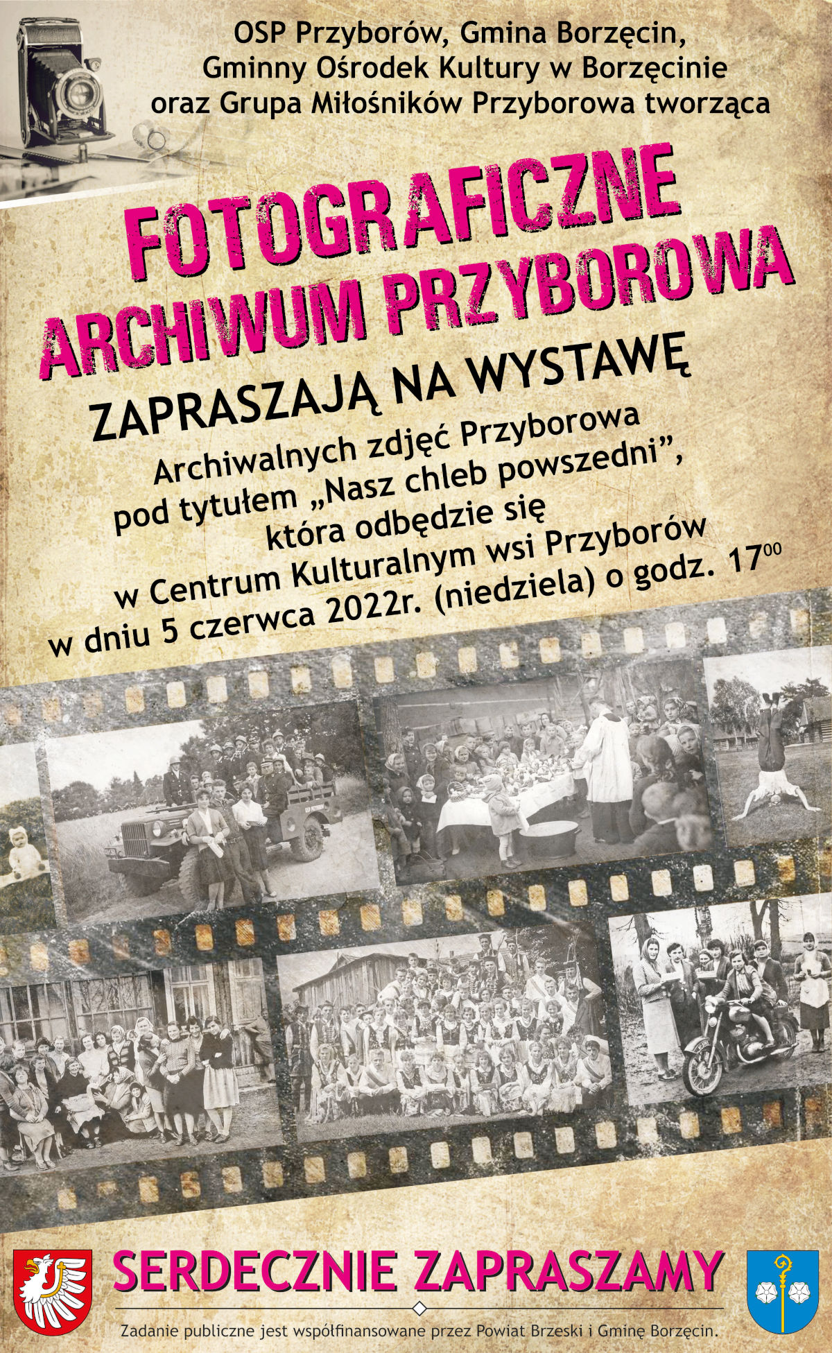 Ochotnicza Straż Pożarna w Przyborowie, Gmina Borzęcin, Gminny Ośrodek Kultury w Borzęcinie oraz Grupa Miłośników Przyborowa tworząca FOTOGRAFICZNE ARCHIWUM PRZYBOROWA zapraszają na wystawę archiwalnych zdjęć pod tytułem „Nasz chleb powszedni”. Wydarzenie, którego pomysłodawcą jest pochodzący z Przyborowa Sebastian Szuba, odbędzie się w Centrum Kulturalnym Wsi w dniu 5 czerwca 2022r. (niedziela) o godz. 17:00.