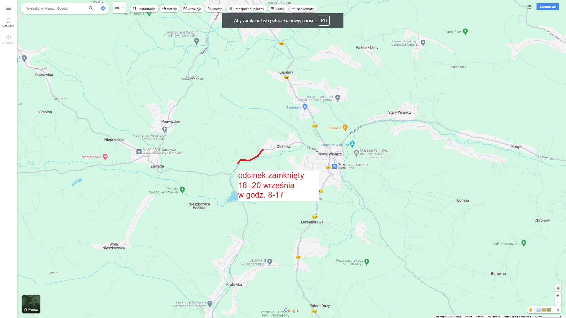 Zamknięty odcinek można zobaczyć na załączonej mapie.