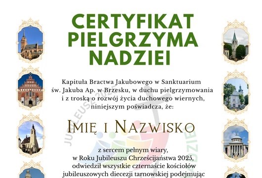 Każdy, kto w Roku Jubileuszowym 2025 nawiedzi wszystkie 14 kościołów jubileuszowych diecezji tarnowskiej i zbierze w swoim Paszporcie Pielgrzyma komplet pieczątek, może otrzymać Certyfikat Pielgrzyma Nadziei. Rozpoczęło się ich rozdawanie.