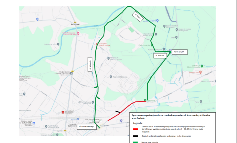 Od wtorku 27 sierpnia, wprowadzona zostanie tymczasowa organizacja ruchu w związku z przebudową skrzyżowania ulic Krzeczowska i Karolina w Bochni. W tym miejscu powstanie rondo.
