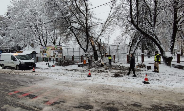 Z powodu silnych opadów śniegu, wiele drzew w Ogródku Jordanowskim zostało uszkodzonych i grozi połamaniem.