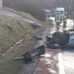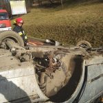 Okocim / Dachowanie samochodu osobowe – 2 osoby ranne / 18 lutego 2020 / zdjęcia