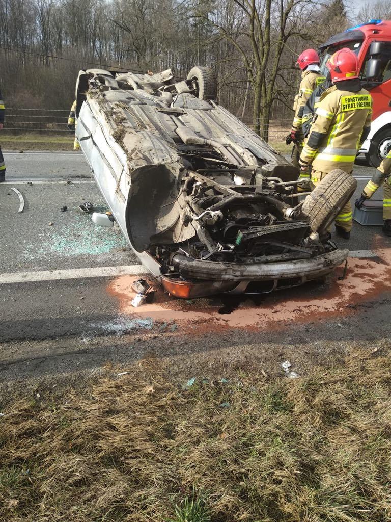 Okocim / Dachowanie samochodu osobowe – 2 osoby ranne / 18 lutego 2020 / zdjęcia