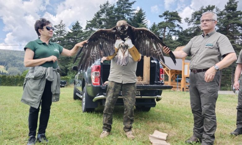 14 lipca orzeł został wypuszczony na wolność. Popłynął w przestworza w centralnej części Beskidu Wyspowego, „startując” z rozległej polany w masywie Dzielca w miejscowości Słopnice.