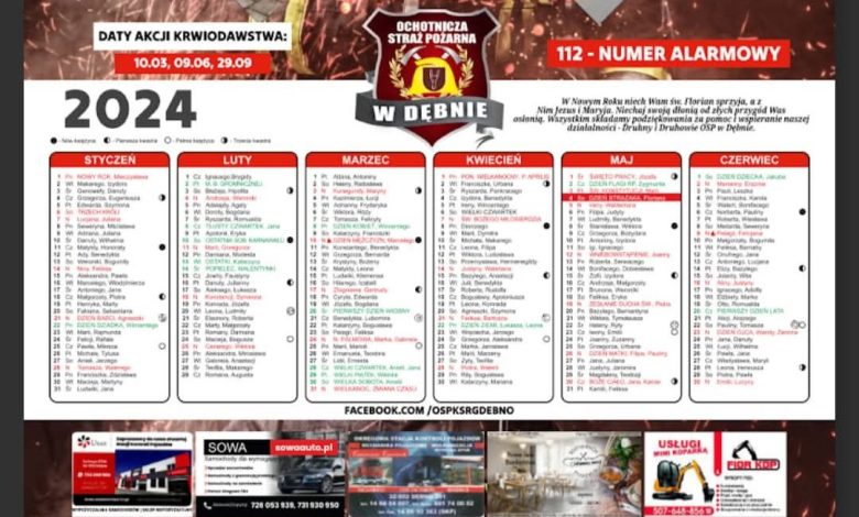 – Napisz do nas! Inwestując w Twojego przyszłego klienta wspierasz nasze działania i swoje bezpieczeństwo!Zapraszamy sympatyków i sponsorów naszego stowarzyszenia do inwestycji w promocję własnej działalności na naszych kalendarzach strażackich, które w pełnym nakładzie trafiają do mieszkańców Dębna – zachęcają druhowie z OSP Dębno.