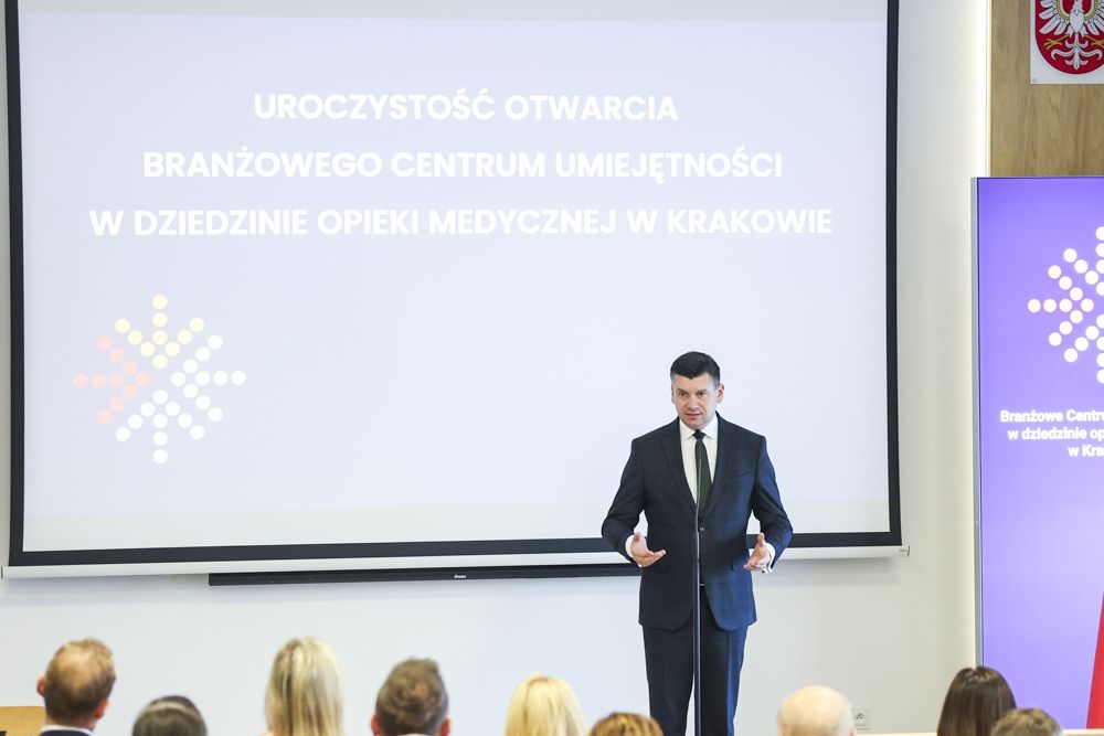 Województwo Małopolskie na pierwszym miejscu stawia na zdrowie i bezpieczeństwo. Dzisiejszy dzień jest niezwykle ważny dla wszystkich osób związanych z edukacją, sektorem ochrony zdrowia oraz kształceniem w zawodach medycznych. Nasze Branżowe Centrum Umiejętności to nowoczesna infrastruktura, specjalistyczny sprzęt, najnowsze technologie, ale przede wszystkim to inwestycja w ludzi – opiekunów medycznych. Jest to szansa na ich rozwój zawodowy oraz możliwość zdobywania specjalistycznej wiedzy. To oni, każdego dnia, niosą pomoc i wsparcie osobom chorym, starszym i niesamodzielnym. Opiekunowie są coraz bardziej potrzebni w obliczu starzenia się społeczeństwa. Wymaga się od nich wiedzy i umiejętności, ale także empatii i oddania drugiemu człowiekowi – podkreślił marszałek Łukasz Smółka.