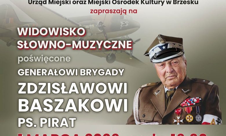 Światowy Związek Żołnierzy Armii Krajowej – Koło Brzesko, Urząd Miejski w Brzesku oraz Miejski Ośrodek Kultury w Brzesku zapraszają na widowisko słowno-muzyczne poświęcone generałowi brygady Wojska Polskiego Zdzisławowi Baszakowi ps. Pirat.